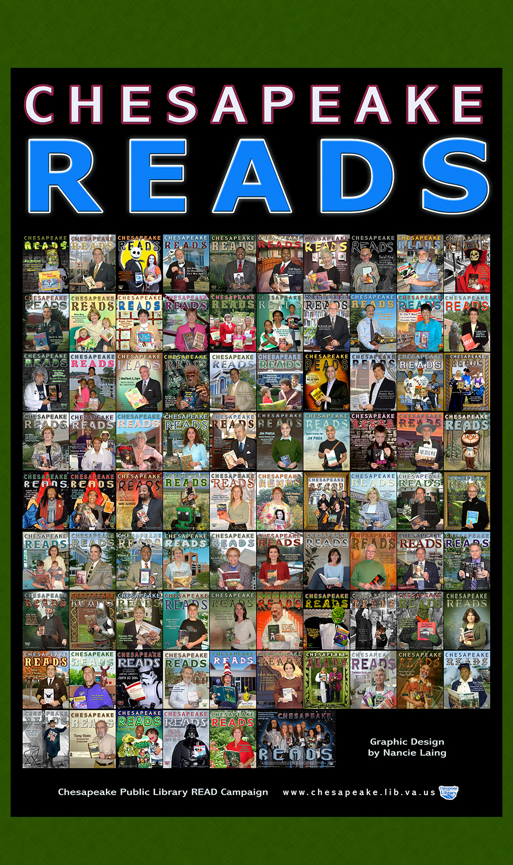 Here are some of the almost 100 "Chesapeake READS" posters I made for the Chesapeake Public Library system.